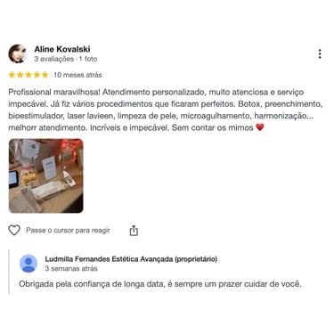 À frente da Clinic LF Estética Avançada, Ludmilla une ciência, técnica e sensibilidade em protocolos exclusivos, que priorizam naturalidade, equilíbrio e segurança.