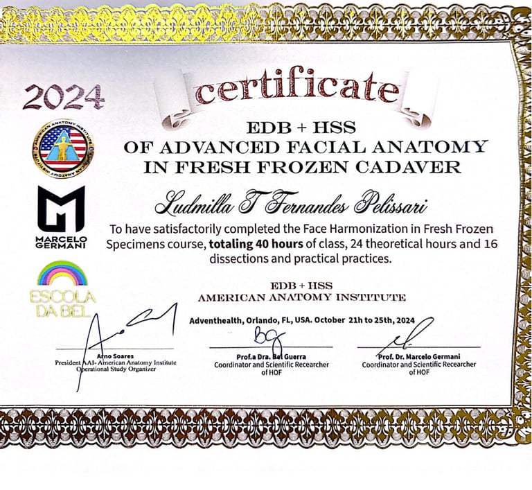 Movida pela busca constante por excelência, concluiu sua graduação em Biomedicina, especializou-se em harmonização facial e rejuvenescimento natural, e conquistou certificação internacional em Harmonização Facial Frash Frozen pelo American Anatomy (Orlando – EUA).